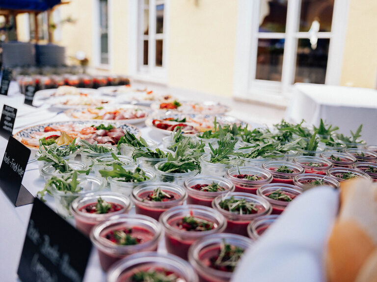 bis 20 Personen: à la carte ab 20 Personen: verkleinerte Karte oder individuelles Menü ab 50 Personen: bieten wir Ihnen gerne unsere Showbuffets an